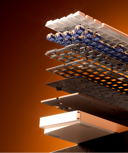 针对传统磁轴键盘 “敲击壳体共振” 的行业痛点,Akko 结合九年外设研发经验,为MOD 68 打造全新 Gasket 结构设计磁轴方案,用强悍实力从根源解决Gasket结构对磁轴精度影响,优化手感与声音,带来旗舰级的细腻体验: