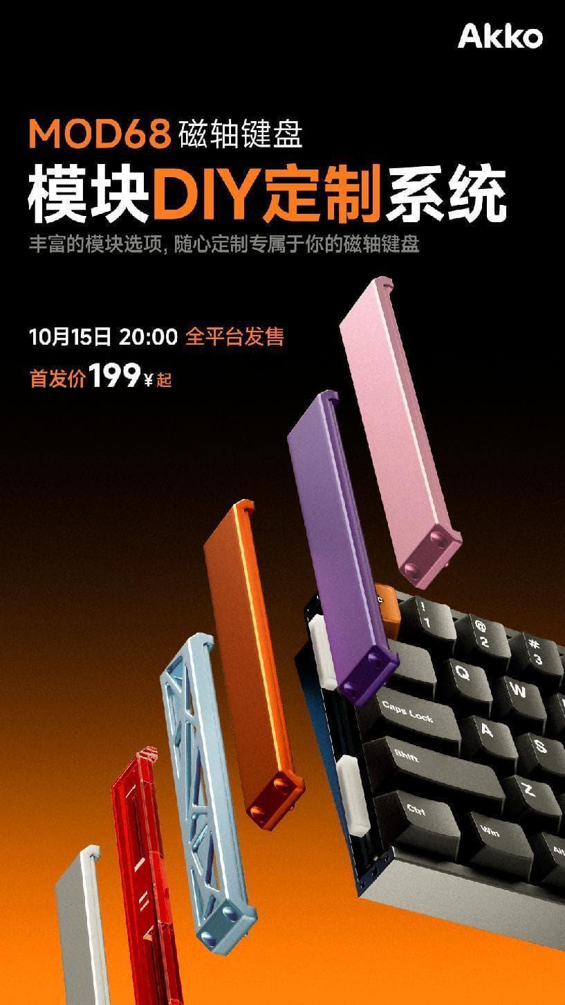Akko 在个性化设计上突破传统,打造全维度模块 DIY 定制系统,让用户从内到外掌控键盘组装,后续还能单独增补配件,DIY 属性拉满,完美契合九周年 “陪伴与共创” 的品牌理念,告别千篇一律!作为 AKKO 模块化定制系统的开山之作,MOD 68 可凭借模块化灵活组合,精准操控,让每一次敲击都成为专属享受。让用户可以根据自己的喜好客制化自己专属键盘,全部模块都支持整机定制或单独购买,完整定制系统也即将与大家见面: