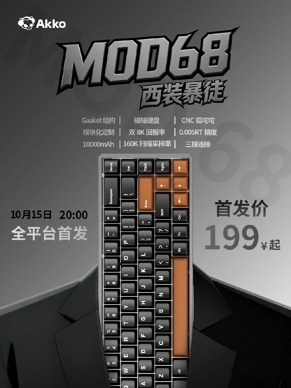 从 DIY 客制化的灵活性,到 Gasket 结构与定制轴体的性能突破,再到 “西装暴徒” 的颜值与超长续航的实用性,Akko MOD 68 不仅是一款磁轴键盘,更是 Akko 九周年献给用户的 “诚意之作”。此次九周年首发福利有限,感兴趣的用户可尽快搜索 “Akko MOD68”,锁定专属定制方案,开启九周年个性化键盘新体验!